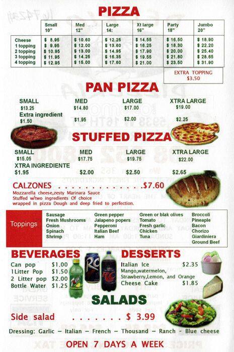 Del Rio Pizzeria Menu Menu For Del Rio Pizzeria Cicero Chicago